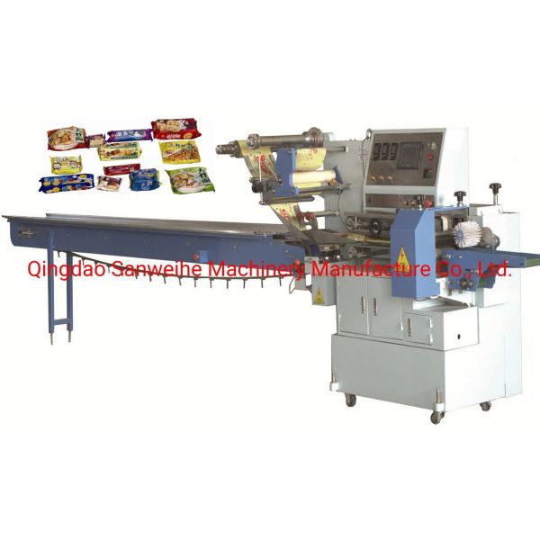 We have both the button controlled flow packing machine and the PLC touch screen controlled flow packing machine